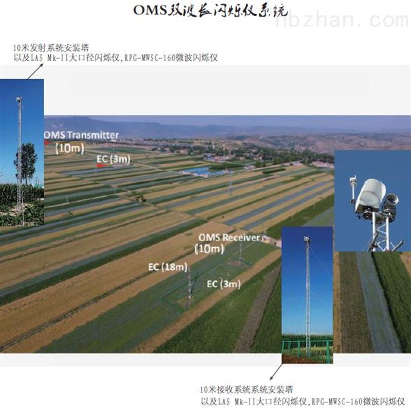 OMS双波长闪烁仪系统用于直接测量感热通量(H)以及蒸散(潜热通量,LvE);加装气象站设备,同时测量空气温湿度、气压、风速风向、降水等,并用能量平衡法校准对比。